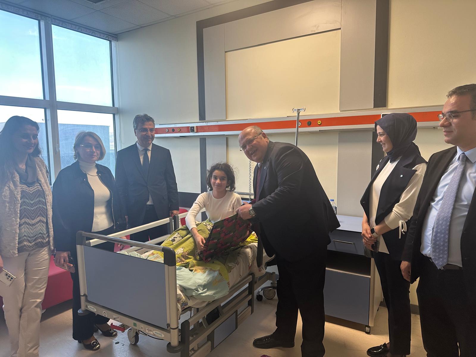 Halkbankası Malatya Bölge Koordinatörü Tuncay Baytaşoğlu ve ekibi 23 Nisan Ulusal Egemenlik ve Çocuk Bayramı nedeniyle kurumumuzu ziyaret ederek tedavi gören çocuk hastalara hediye verdiler.